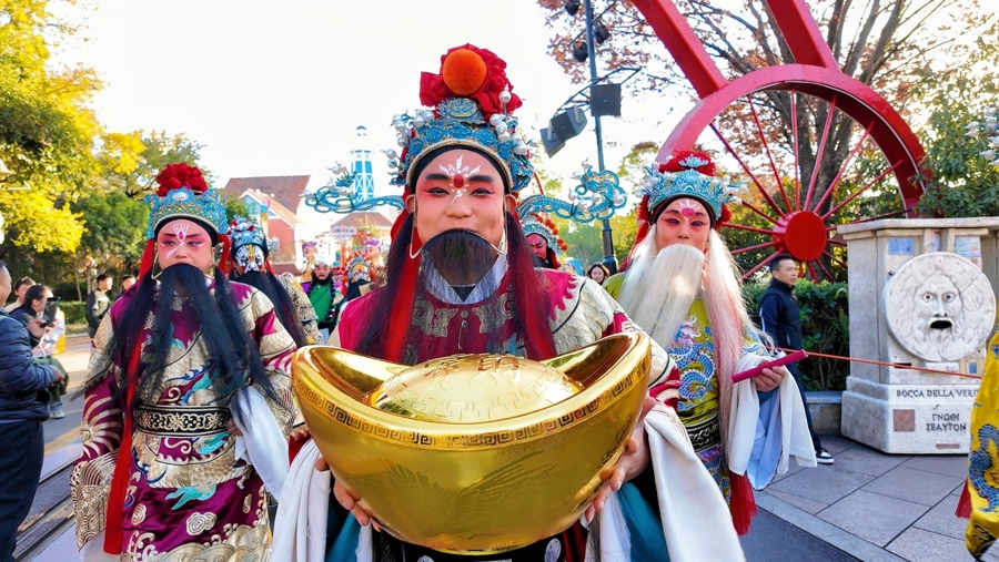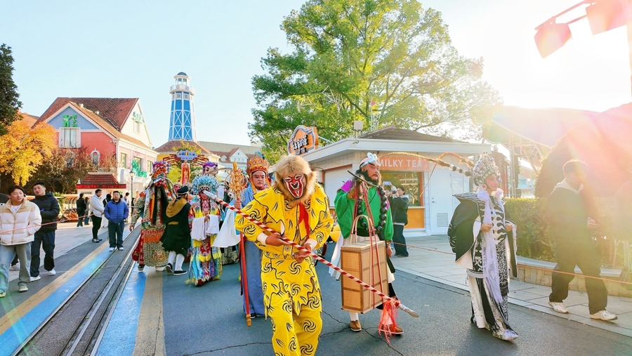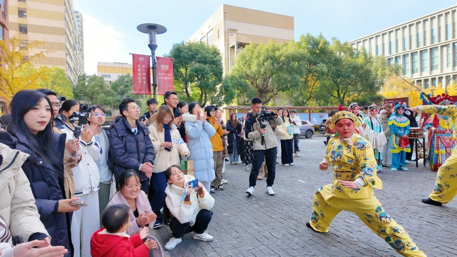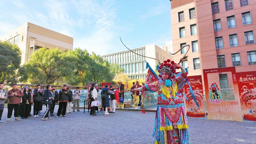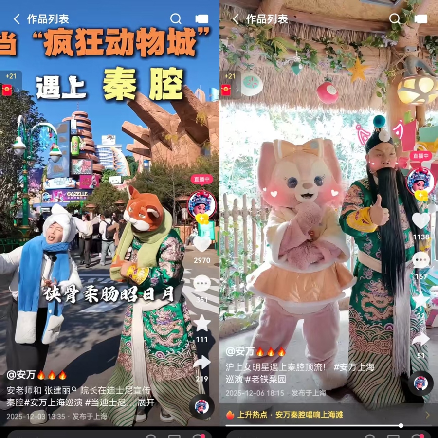 “狐兔同心天地鉴,情谊花好月又圆……”12月3日上海迪士尼乐园,安万即兴开唱,教玲娜贝儿摆出秦腔经典亮相动作,这是他48小时快闪挑战的第一站。当天下午在欢乐谷花车巡游中,秦腔演员们化身财神、关羽、孙悟空,表演甩袖、亮相。晚上8点外滩游轮,安万带领剧团成员与管弦乐队同台,一边是二胡、梆子的铿锵节奏,一边是长笛、小提琴的悠扬旋律。当游轮行至东方明珠,安万即兴改编唱词,用秦腔赞美上海繁华,随后带领众人唱响《潼关》。12月4日,剧团走进复旦大学,水袖功、把子功、花枪尽显秦腔的刚劲力量。唢呐、二胡演绎《云宫迅音》及多首现代歌曲,赢得掌声不断。