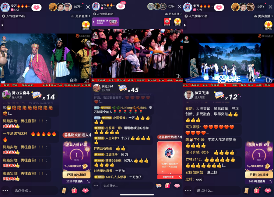 “让更多人尤其是年轻人了解秦腔、发扬秦腔,是我的梦想。”安万说。12月3日至7日,快手新知打造“安万上海巡演活动”,2天城市快闪遍及迪士尼、复旦、欢乐谷,3天公益演出在安万快手账号全程直播,4817万人次在线观看,相关短视频播放超过3.2亿次。3天6场公益演出收获约5400人次现场观看。