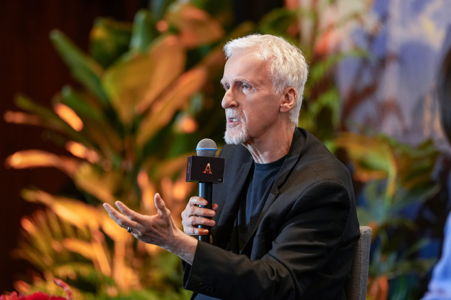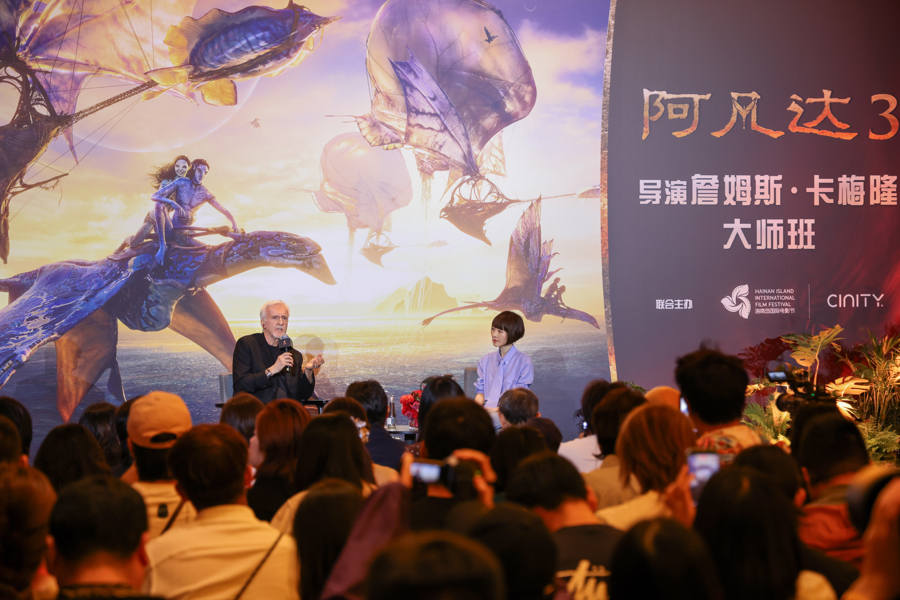 “你好!”在出席《阿凡达 3》中国首映礼的第二天,导演詹姆士·卡梅隆9日下午现身第七届海南岛国际电影节大师班,并且用一句中文问候开启了一场真诚的对谈。从《终结者》到《异形2》,从《泰坦尼克号》到《阿凡达》,再到《阿凡达3》,卡梅隆导演始终是电影技术的革新先锋,不断以视觉奇观突破影迷的想象边界,但这位当今影坛最具才华和影响力的导演、编剧、制片人在谈到AI技术时直言,“生成式AI只能做平庸的工作,既创作不出艺术作品,也创造不出我们不曾见过的东西。”