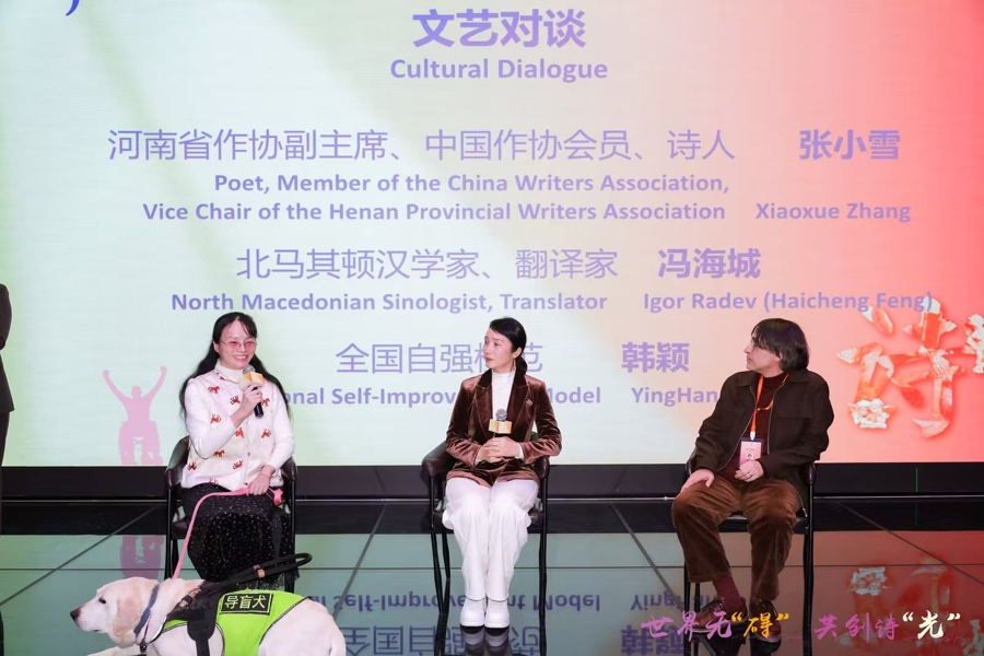 来自马其顿的诗人、汉学家冯海城、张晓雪,与全国自强模范韩颖共同交流探讨文学创作方面的心得。不同文化背景下的思想碰撞,为残健共融的中外文化交流增添了浓墨重彩的一笔。